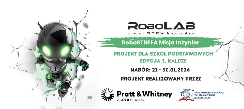 „RoboSTREFA – Misja Inżynier” to projekt Fundacji Wspierania Edukacji przy Stowarzyszeniu Dolina Lotnicza, który powstał wspólnie z firmą Pratt & Whitney Rzeszów oraz RoboLAB Local STEAM Incubator. Ma on za zadanie wykształcić u młodych osób kluczowe kompetencje przyszłości, pokazując istotę roli inżyniera w rozwoju nowoczesnych technologii.